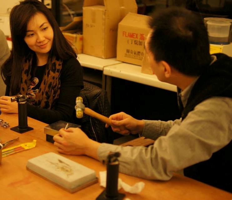 主要學習金工技法:金屬質感鍛造—學習使用不同的金工鎚,在金屬表面上鍛敲出各式質感,加強金屬作品的立體層次。