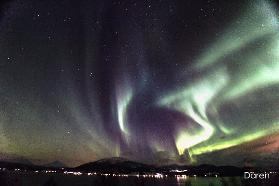 每年9月15日到隔年3月31日是挪威的黑夜,有時白天就是那2~3個小時,有時不看一下手錶還真不知是早上還是夜晚。這段期間天空只要晴朗無雲,那麼就有機會看見有如綠絲帶般流動的極光,轉換各式各樣美麗的畫布呈現在您的眼中。