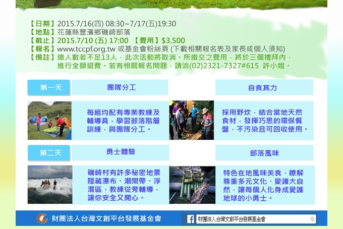 - 活動日期 : 民國104年7/16(四)~7/17(五)