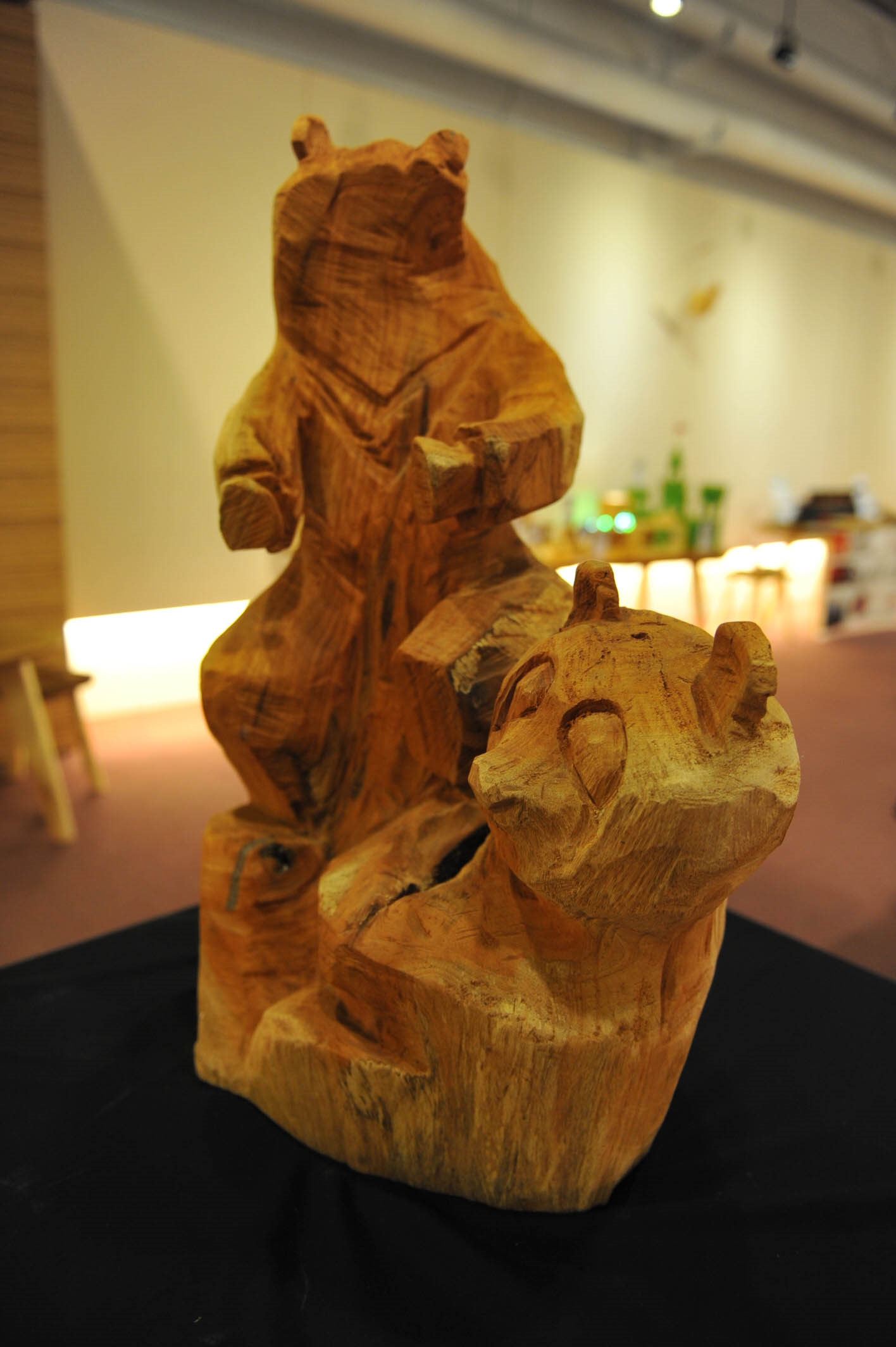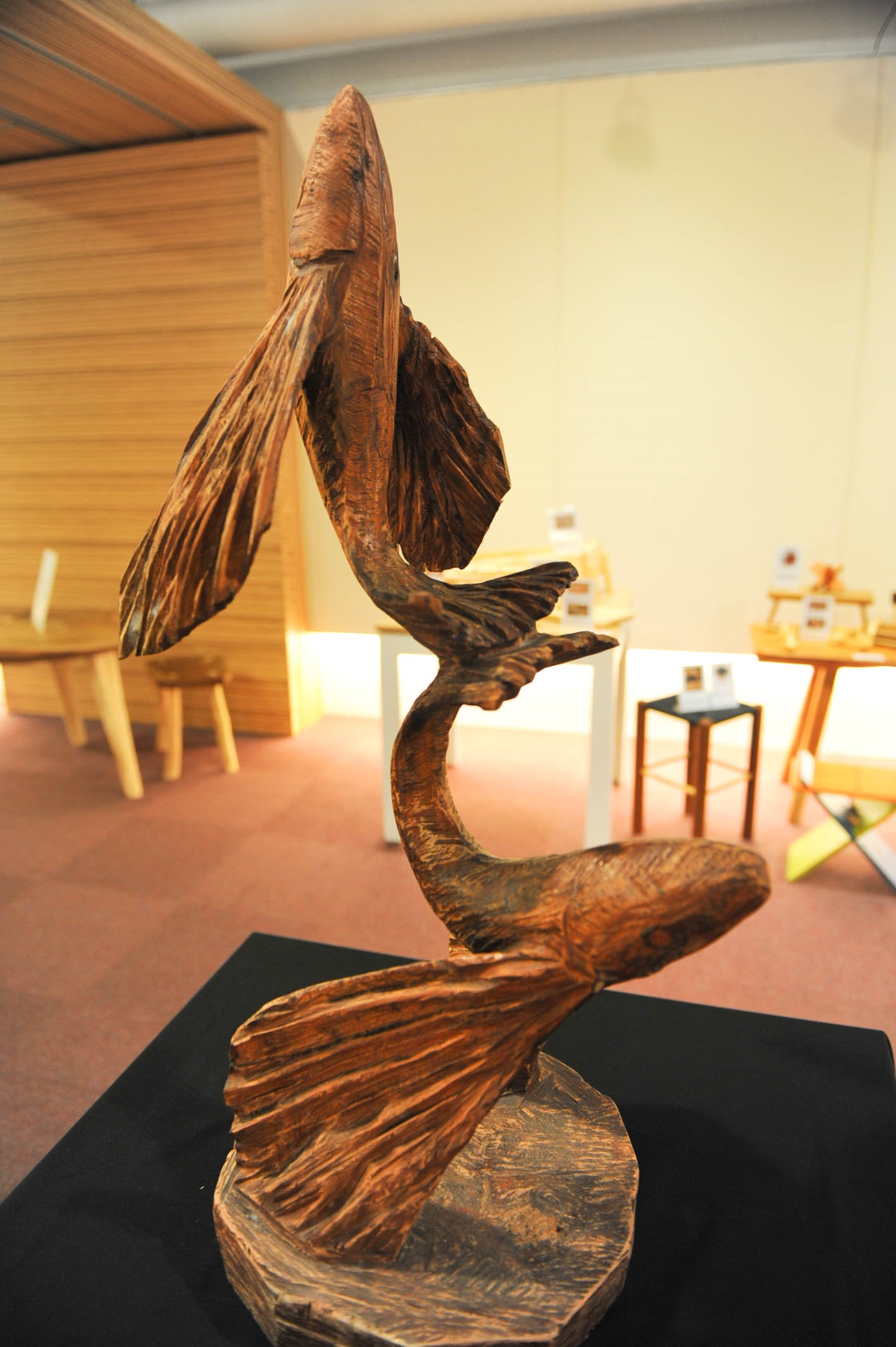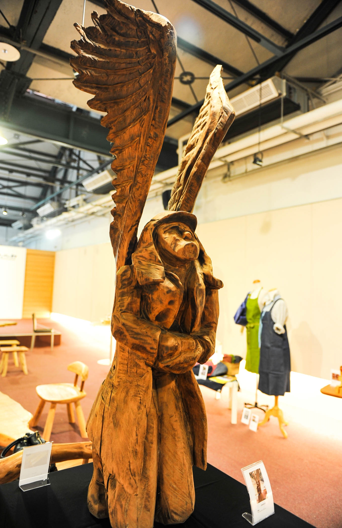 當天的展品有阿美族希巨蘇飛的木雕作品「翅膀帶回家」,一位穿著軍裝的老兵雙膝跪下合十望天,背後有一雙強而有力的大翅膀,希望祖靈可以帶著阿美族勇士的靈魂回家,在阿美部落裡老人家相信「如果你死在異鄉,你可以請求祖靈給你一對翅膀,它可以帶領你回到部落。」