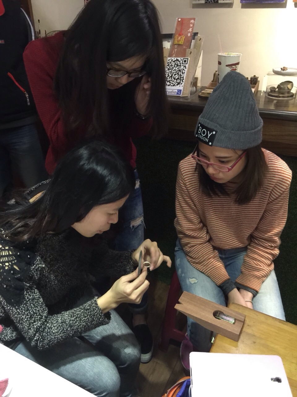 由MIX GENE 講解純銀小知識,教導鍛敲、焊接、修整、拋光、染色處理等,並可於金屬上打上專屬鋼印文字;課程教導專業金工技術並可由學員藉現有銀料自由發揮,3小時小班制教學製程。