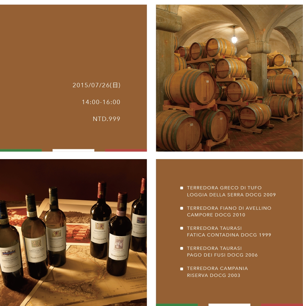 這次相當難得由第一次來台的莊主Daniela Mastroberardino及在Wine & Spirit Education Trust (WSET) 攻讀葡萄酒與烈酒的文憑的義大利品酒師Alessandro Zuttioni揭開義大利的藏寶圖、發現義大利的珍藏 - 坎帕尼亞。這片神祕的土地在羅馬時代就等於是現代的波爾多,