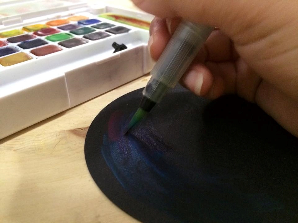 幫黑卡紙塗上星空色