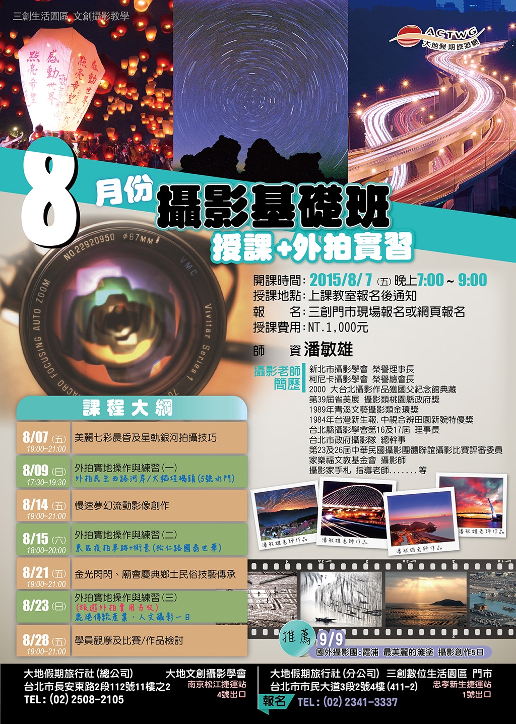 8月專題攝影創作班課程表 (潘敏雄老師)