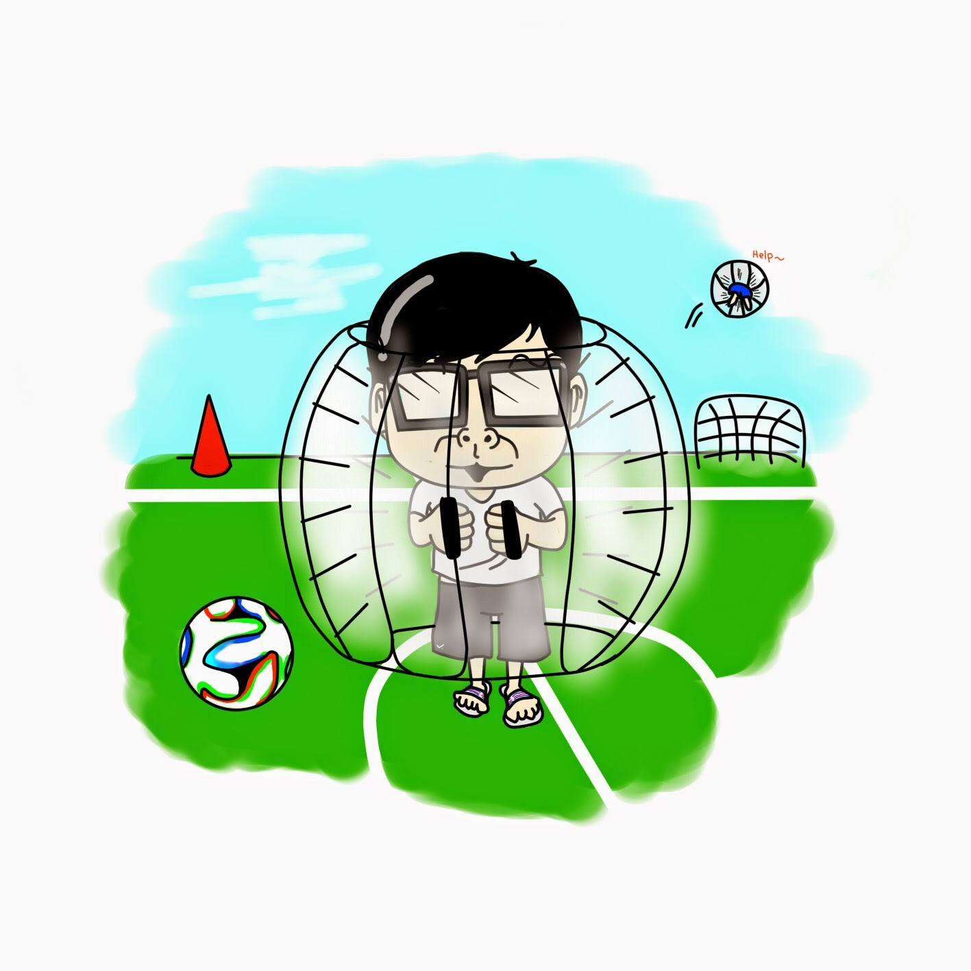 1. 每個參加遊戲的人都會穿上泡泡球,泡泡球是塑膠材質做成,穿上就像具有保護作用的安全氣囊一樣隨身護衛著你。