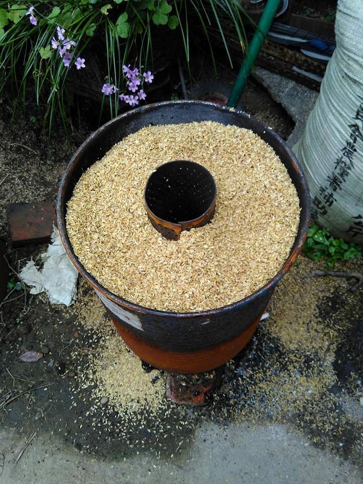(附圖:將稻穀放進爐子,準備燒炭囉!)