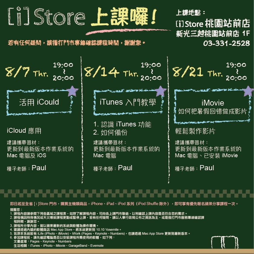 桃園站前店 其他 Apple 分享體驗課程: