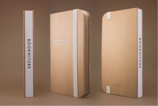 *Bookniture為美國群眾募資網站Kickstarter熱賣商品,由香港設計師Mike Mak所設計,是書本(Book)與傢具(Furniture) 的結合!合上時跟一般收藏在書架上的書無異,展開立即成為一張多用途的傢具,可當作椅子、茶几、桌子或是靠腳椅,野餐等戶外活動使用也十分合適。其特殊的摺紙結構(origami structure, Patent pending),可承載超過900公斤的重量,是堅固耐用的移動式家具。