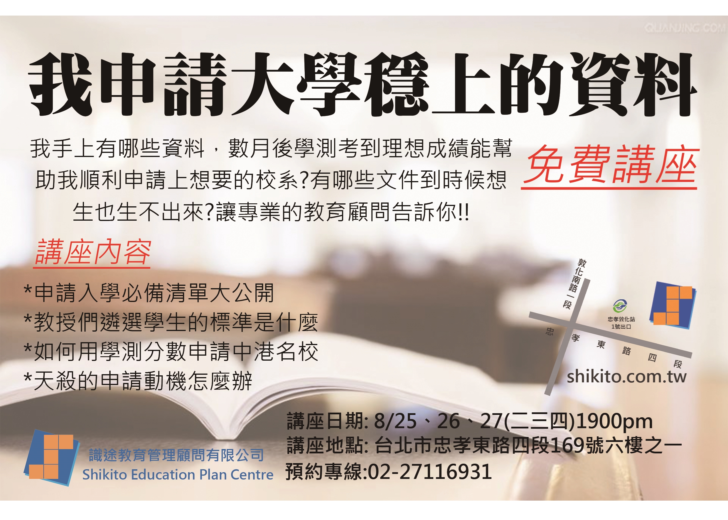 歡迎想對申請入學進一步認識的同學家長澳茗本免費講座