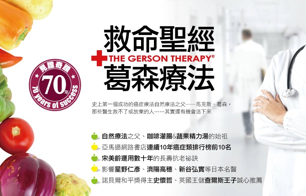 ◆ 風靡全球!史上第一個成功的癌症療法──葛森療法,70年來救命人數多到無法估計!