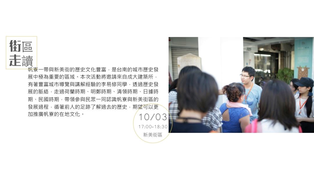 包含走跳巷弄、閱讀街區故事的街區走讀;