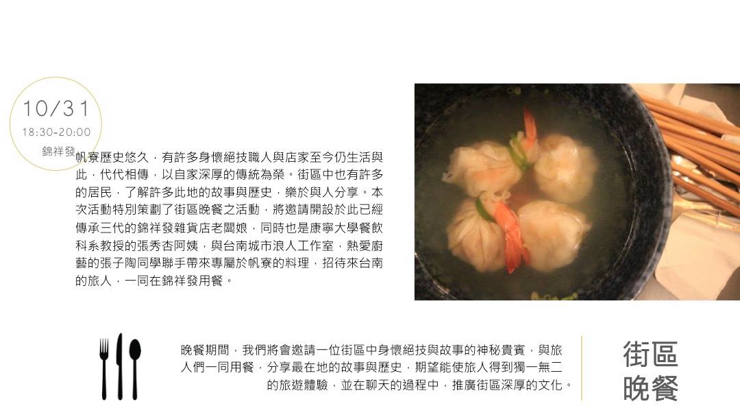 在蜻亭,由街區媽媽_錦祥發老闆娘,一展廚藝,一邊晚餐一邊聽古董店老闆講古的街區晚餐;