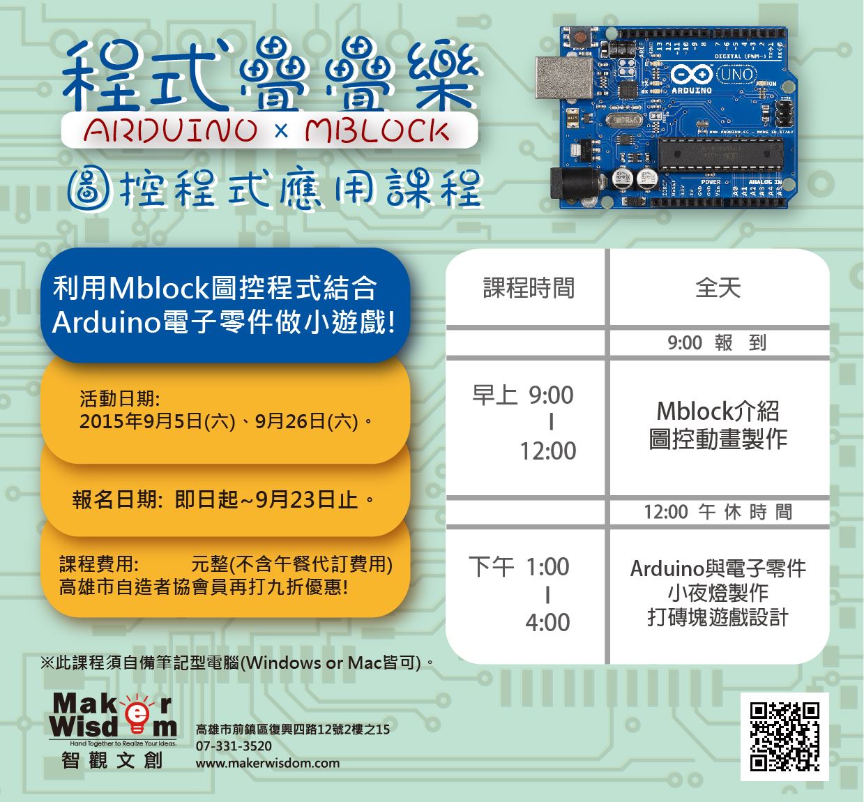 課程對象:國中以上對Arduino有興趣的朋友皆可參加。