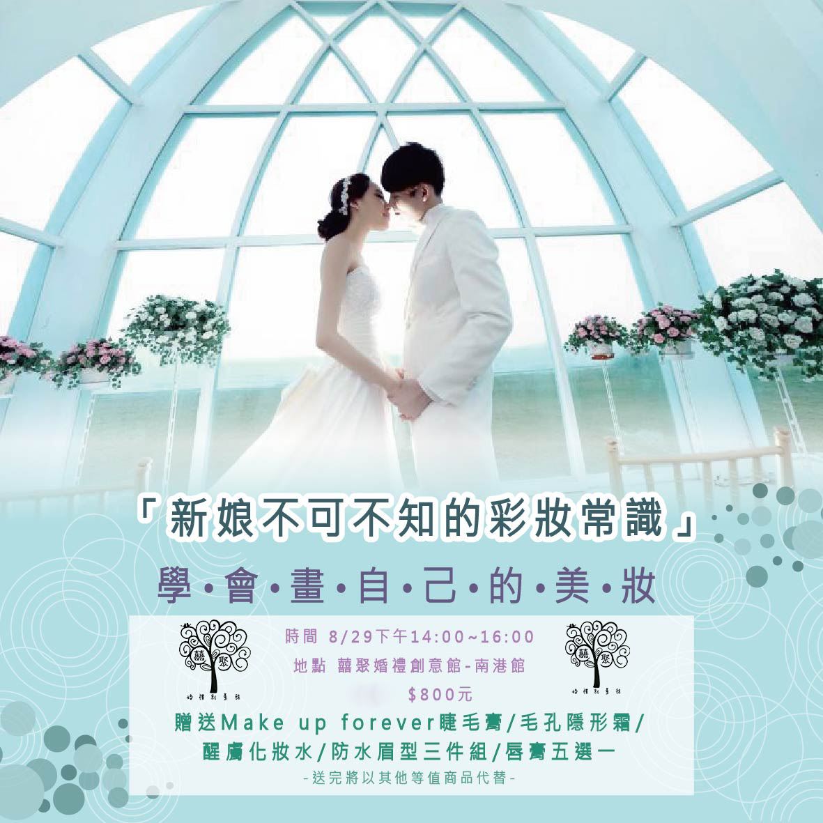 時間:8/29下午14:00~16:00地點:囍聚婚禮創意館-南港館