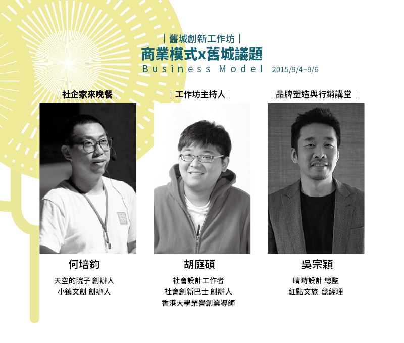商業的概念,在於為利益關係人創造價值;商業模式,則是為了創價而誕生的交易系統;將商業模式套用到舊城的社會議題上,透過議題觀察、商業模式九宮格操作、創意發想與市場驗證,學習如何開創具有永續財力、物力、人力資源的社會企業運作。