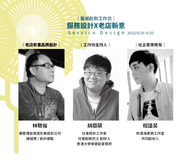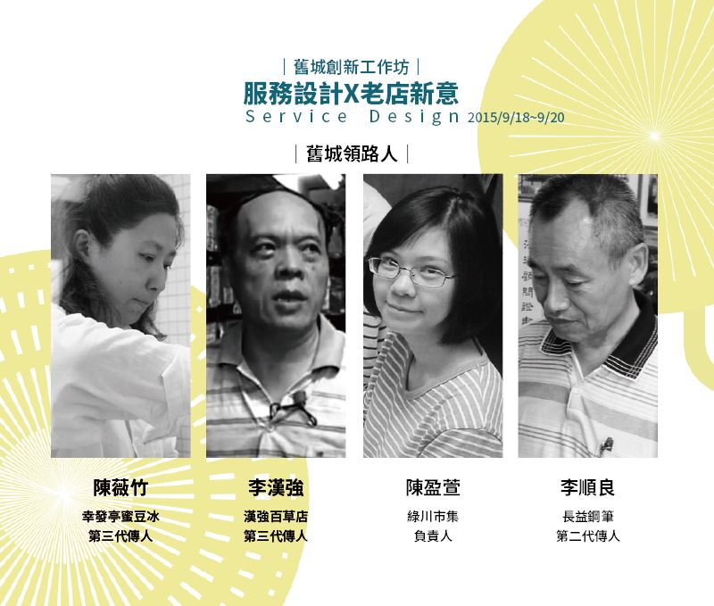 文創,是透過從使用者中心的設計手法,讓舊有文化得以進入當代生活;服務設計不僅是一套設計手法,更是一種整合性的使用者中心價值觀,透過使用者經驗觀察、文化轉譯、想像設計到實作,讓妳/你習得與社會溝通的練習,也讓老店風華得以展現。