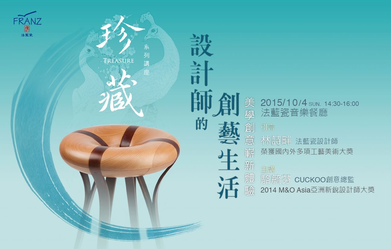 珍藏,是編織夢想的時光、一股用心體驗的力量。2015,法藍瓷珍藏美好之年,特別推出珍藏系列講座,期望能自設計開啟一段值得珍藏的美學體驗。