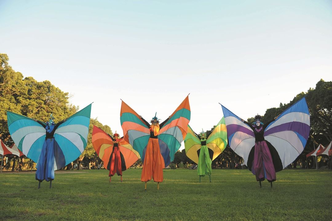 《希望之翼》以「高蹺鳥」造型展翅高飛的精神出發,搭配舞蹈與隊形編排,再加入創意森巴鼓,呈現充滿感官震撼與絢爛色彩的獨特演出。在強烈的視覺色彩與輕快節奏中,身聲劇場以充滿活力、熱情洋溢的帶動,引爆熱情。表演者揮舞著夢想的翅膀,邀請大家走進神聖又奇幻的旅程,讓希望之翼帶著我們一起展翅飛翔。