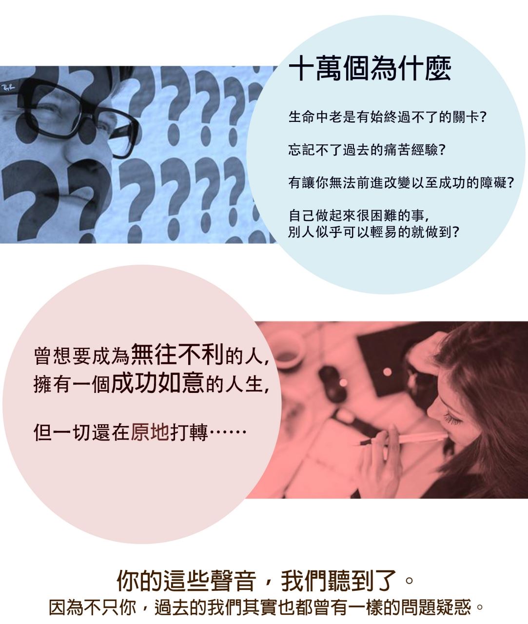 你的這些聲音,我們聽到了,因為不只你,過去的我也有一樣的問題疑惑。