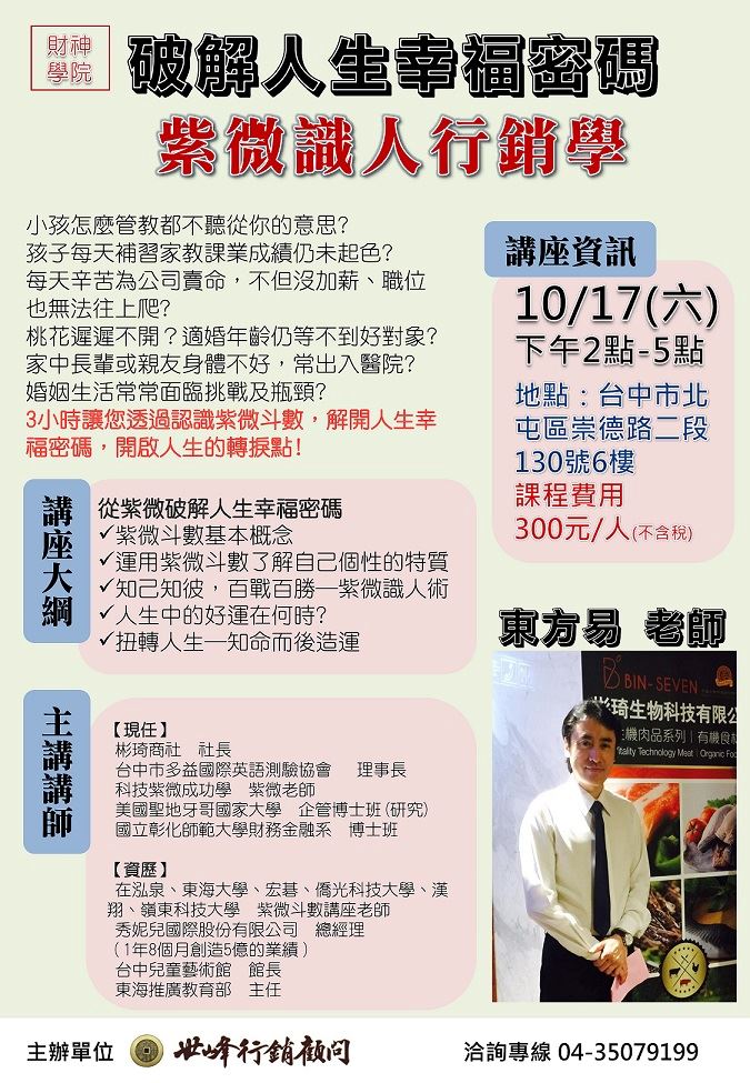 【財神學院】 《破解人生幸福密碼-紫微識人行銷講座》