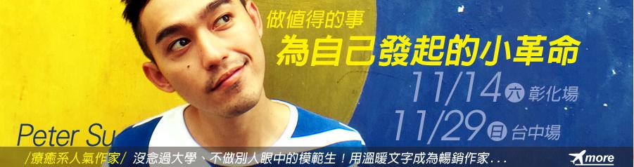 想不想多了解Peter的夢想故事?11月Peter Su將在彰化、台中與您相見!還不快報名搶位!