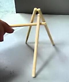 讓我們模擬三角鼎的結構並嘗試在不用手輔助的情形下,要怎麼用一根木棒舉起不相連的三角鼎呢?