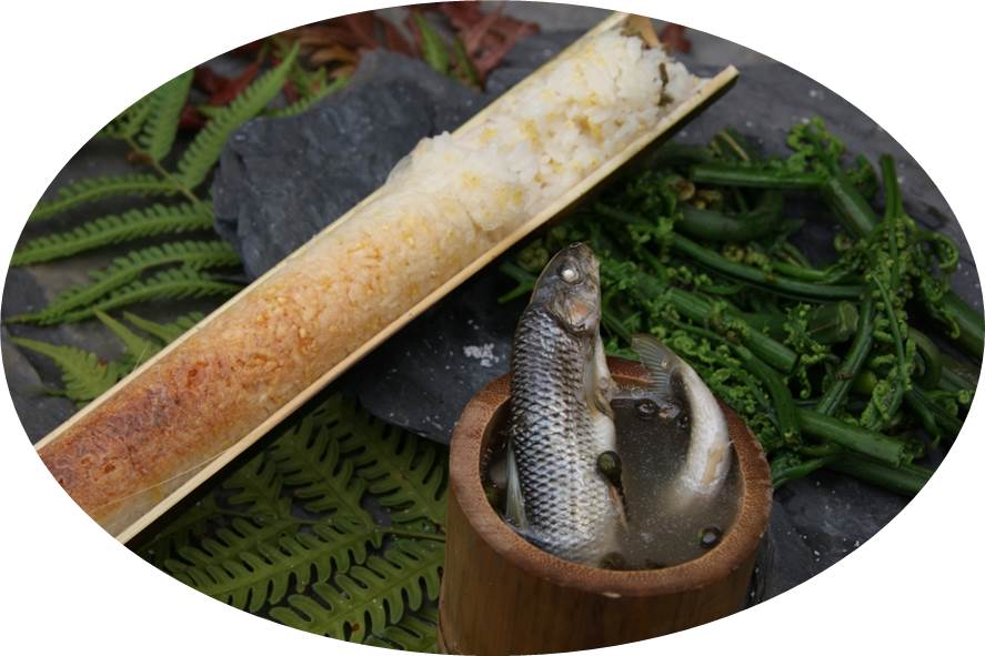 泰雅的六道風土,時令無菜單料理。作物類以自家耕學場當令農作或在地野生、漁類採集為主。部份食材及肉品來源採外購。