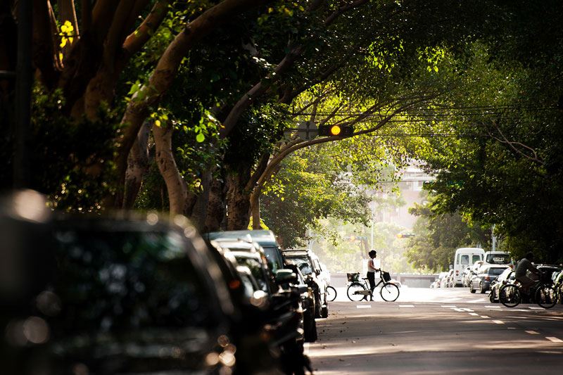 伴著夕陽,漫步在菩提樹成蔭的富錦街,尋訪電影場景;拍攝光影斑爛的街角,讓人快門按不停。