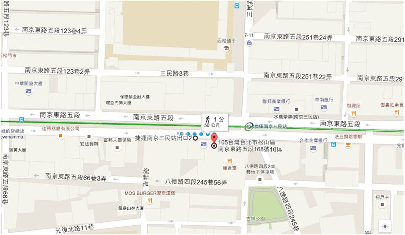 地點:台北市松山區南京東路五段168號10樓(捷運南京三民站2號出口出站後即到)