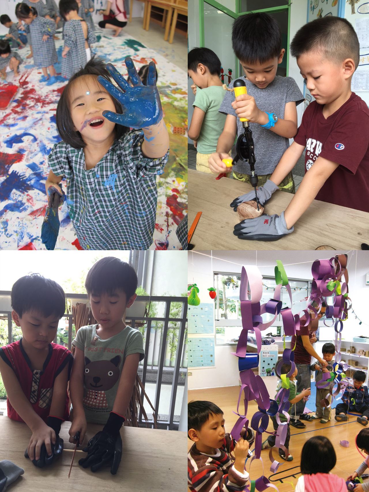 在四季藝術幼兒園,孩子擁有許多動手做的機會,看到一樣東西的各個零件如何組合,在沒有標準答案的過程裡跌跌撞撞,透過動手做專題,逐步激發孩子的學習動機,看見孩子展現解決問題的能力、並且在克服失敗的努力中建立自信心。對孩子而言,這些盡情探索、透過自己的雙手完成他們期望達成的目標的歷程,能帶來豐沛的成就感和信心,並驅使內在的潛能如同快速轉動的齒輪,牽引著他們穿越重重的挑戰,馳騁在學習的旅途中。