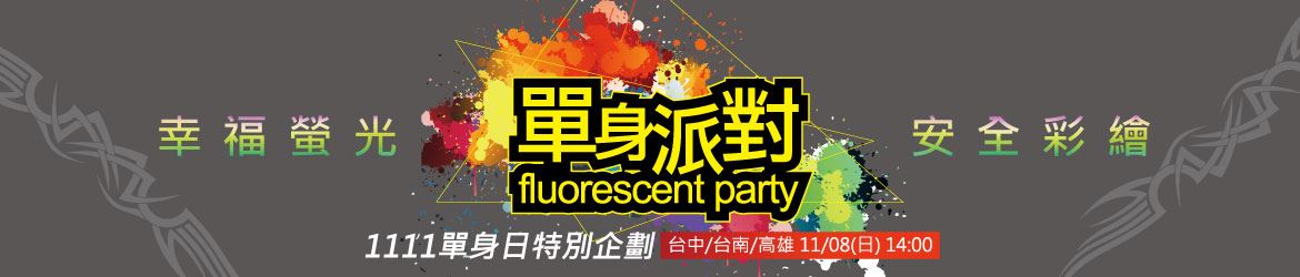 | 11/08(日) 14:00 1111單身特企 幸福螢光安全彩繪單身派對(南三區) |