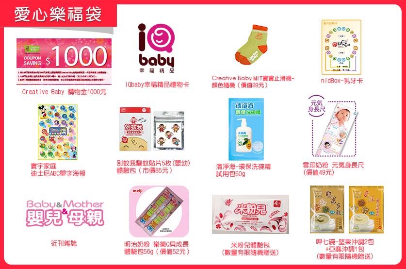 - Creative Baby禮物卡(價值1,000元)