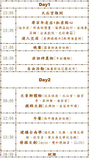 集合時間:13:00 am (不要遲到哦~你可以享受更多的台南風情)