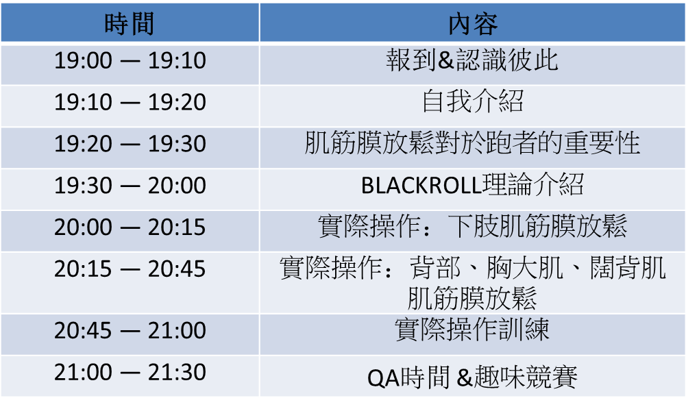 馬拉松滾筒放鬆課程時程表
