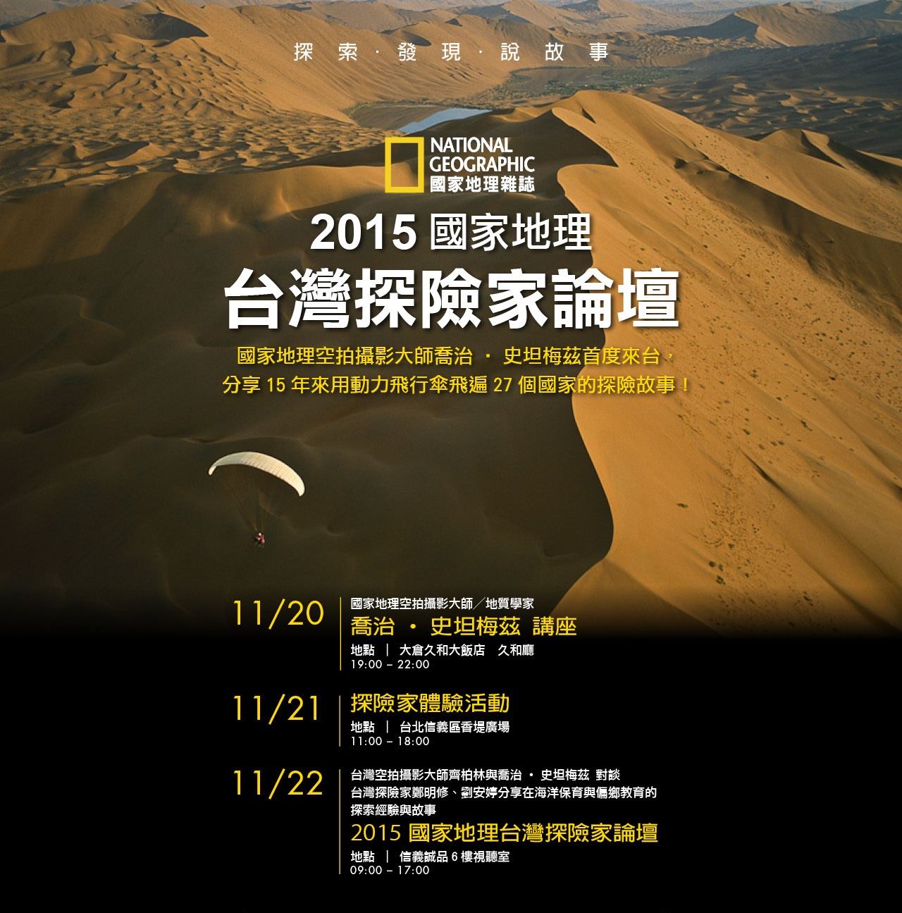 費 用|免費(透過探險家活動、攤位、探險家分享,體驗國家地理的探索精神!)