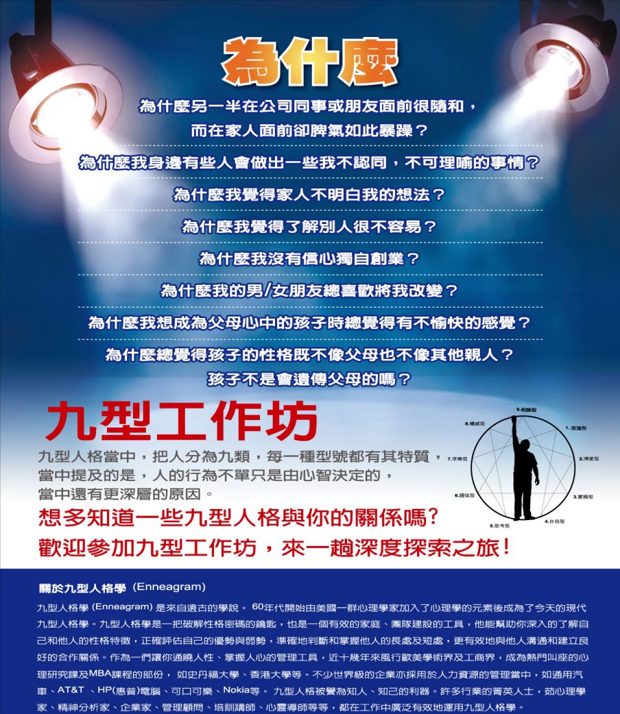 講師這幾天在台灣做推廣,有一場免費講座,歡迎大家來了解「九型人格」到底在講什麼。