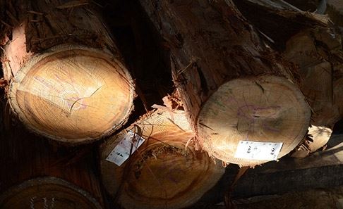 設計】,日檜原木從日本木材市場標購回台灣,從原木取材、加工到白身,透過無垢工序:手工磨砂、