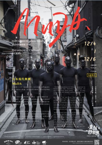MuDA於視覺藝術裝置、繪畫及舞蹈肢體工作坊表現相當耀眼,成立近五年已經受邀到日本不同縣市及海外演出,此次首度跨海來到臺中精明一街,將帶來精彩的表演與互動工作坊,名額有限請把握機會!