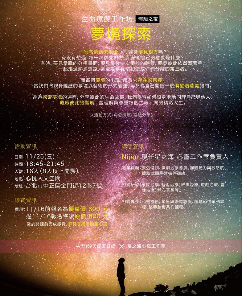 費用:11/16 前報名為優惠價 600 元,逾 11/16 報名恢復原價 800 元 ( 報名時間依匯款時間為主 )