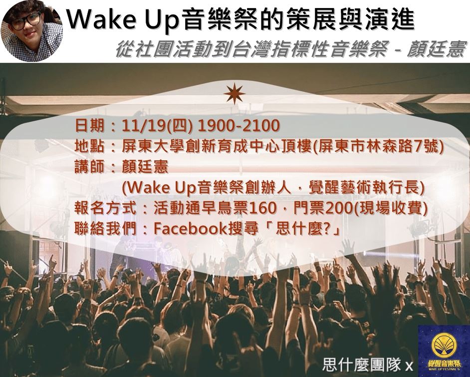 19:00- 20:50 Wake Up音樂祭的策展與演進-由社團活動到台灣指標性音樂祭