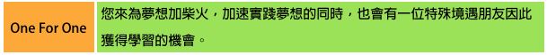 若您參與以上四個系列活動,我們就會捐贈一個學習名額,投入以下特境族群教育運用,也將持續開展其他圓夢教育及職力培訓課程。