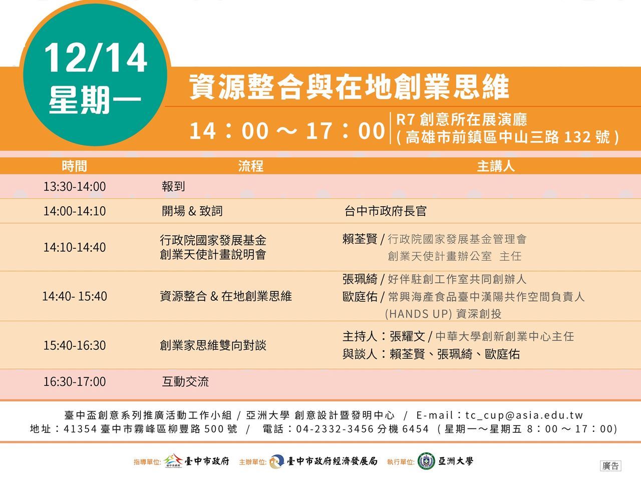 臺中盃創意系列推廣活動-專家座談會12/14「高雄場」