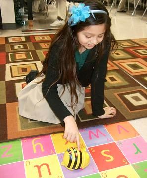 City)的一所小學,正因應電腦科學週舉辦一場對外開放的校園競賽,所有參賽的低年級小朋友們笑容滿面地在家長和貴賓面前展現自己的信心與判斷力,他們手上捧著的金色機器昆蟲,就是風行歐美幼兒界的Beebot小黃蜂。