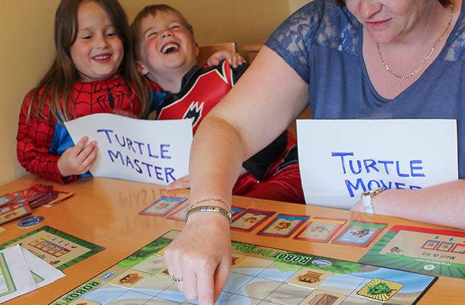 孩童要操作自己的小海龜,一步步穿越迷宮,直到奪得珍珠為勝。利用卡牌上的方位指令編出有效路徑,是遊戲的基本發展,但迷宮中可能出現的石牆、冰牆、推箱、雷射光等,則考驗孩子對出卡順序的判斷力,一個6歲的小腦袋可得在地圖上全神貫注才行。