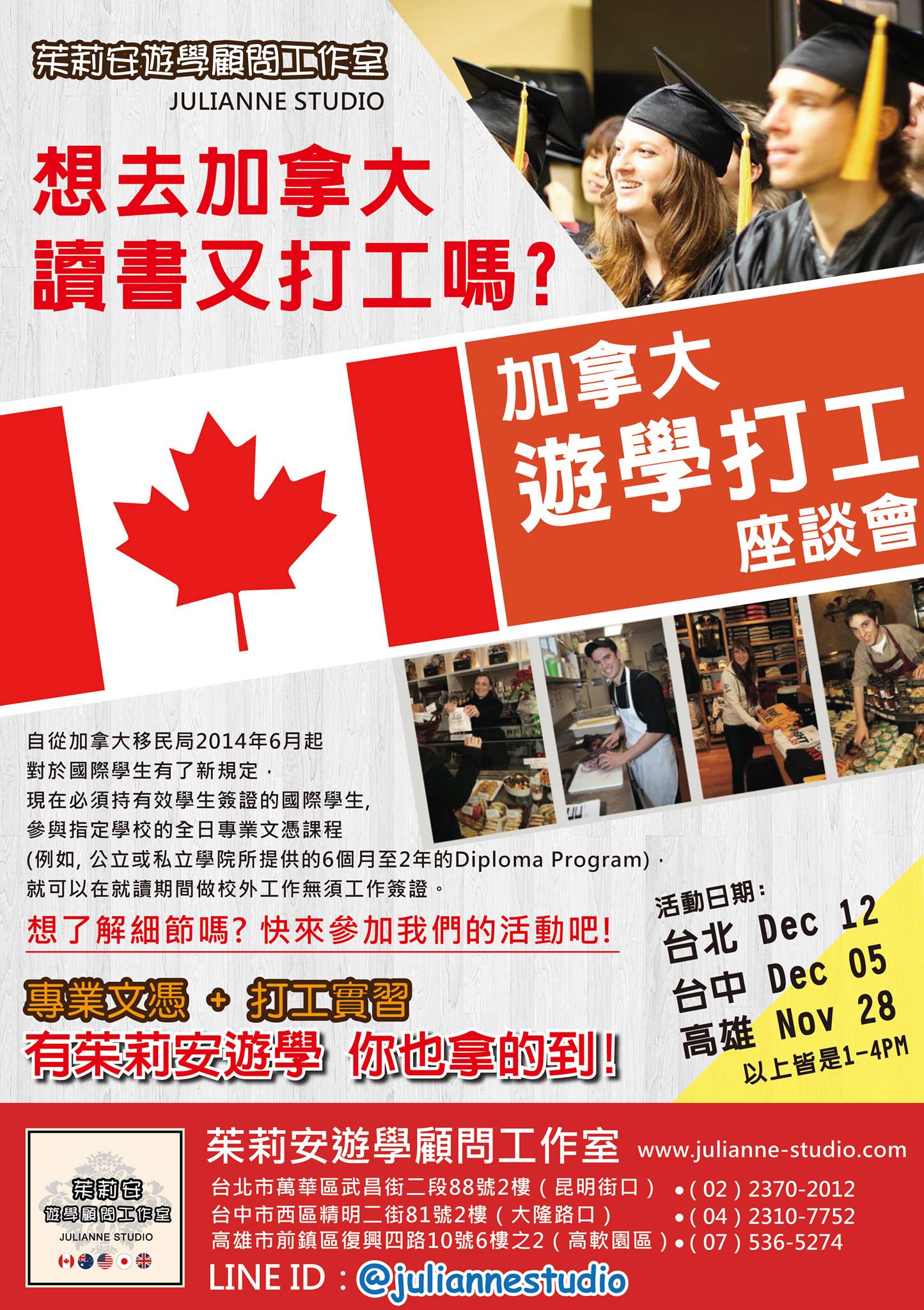 茱莉安遊學顧問工作室: 台北 台中 高雄 加拿大