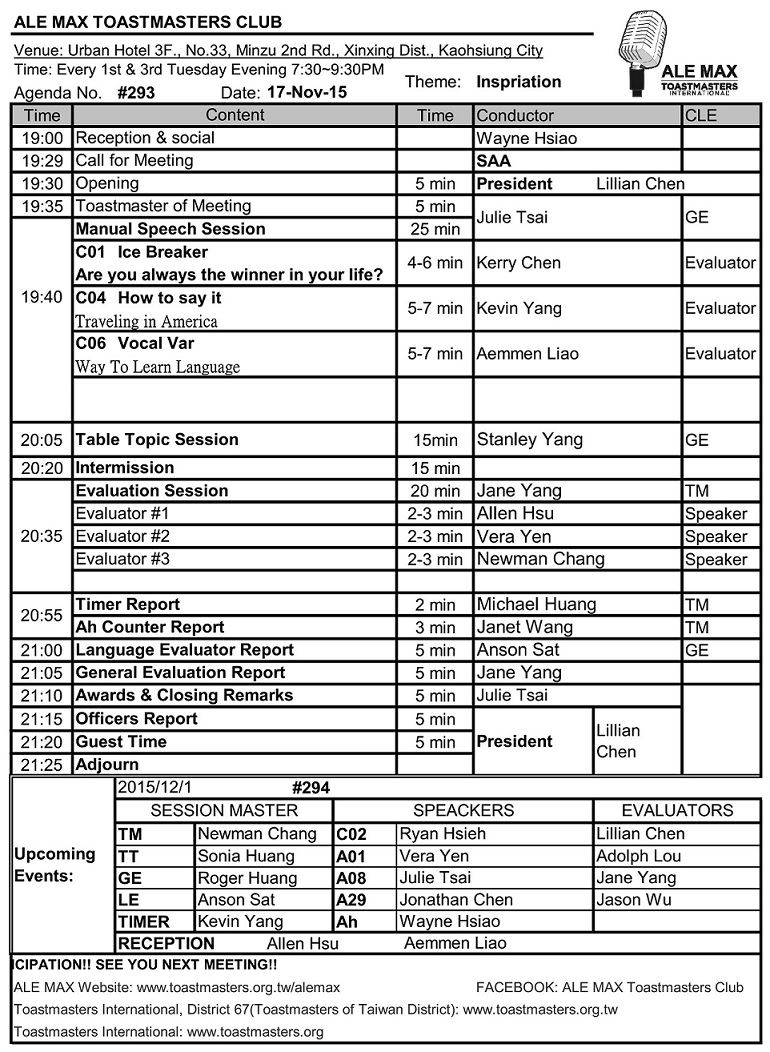 The meeting theme will be ""Inspiration"!