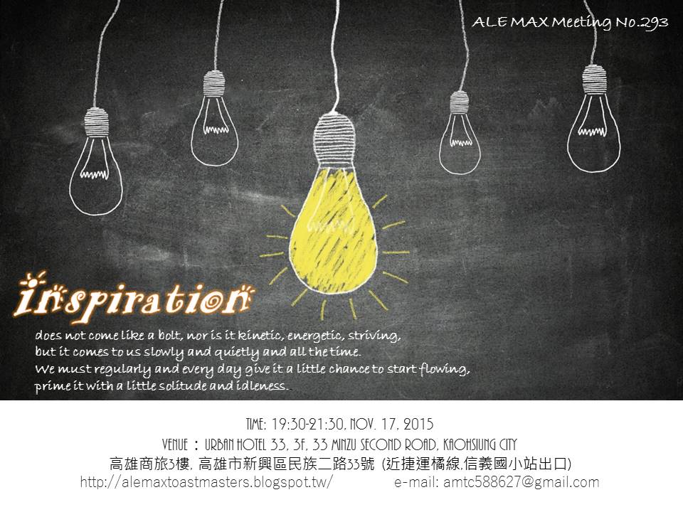 If you lack of inspiration but you really need it, what will you do?Welcome you to attend the meeting to share your tips to us!