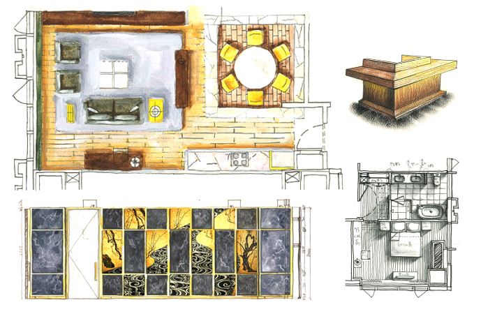 針對基礎室內設計圖及製圖能力之訓練。涵蓋基礎圖學、投影圖法之原理與實作、室內製圖符號及人體工學、尺寸比例及丈量放圖應用,同時熟悉表現法應用媒材(製圖鉛筆、色鉛筆、麥克筆、粉彩),表現平面圖、立面圖及透視圖,培養室內設計基礎圖面之操作能力。