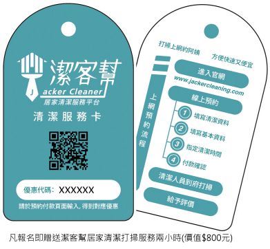 ※凡報名武學人文領袖營,即贈送潔客幫居家清潔打掃服務兩小時(價值$800元)。