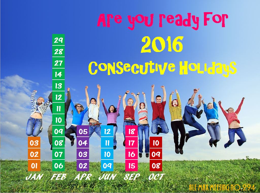 Do you know how many consecutive holidays we will have in 2016?